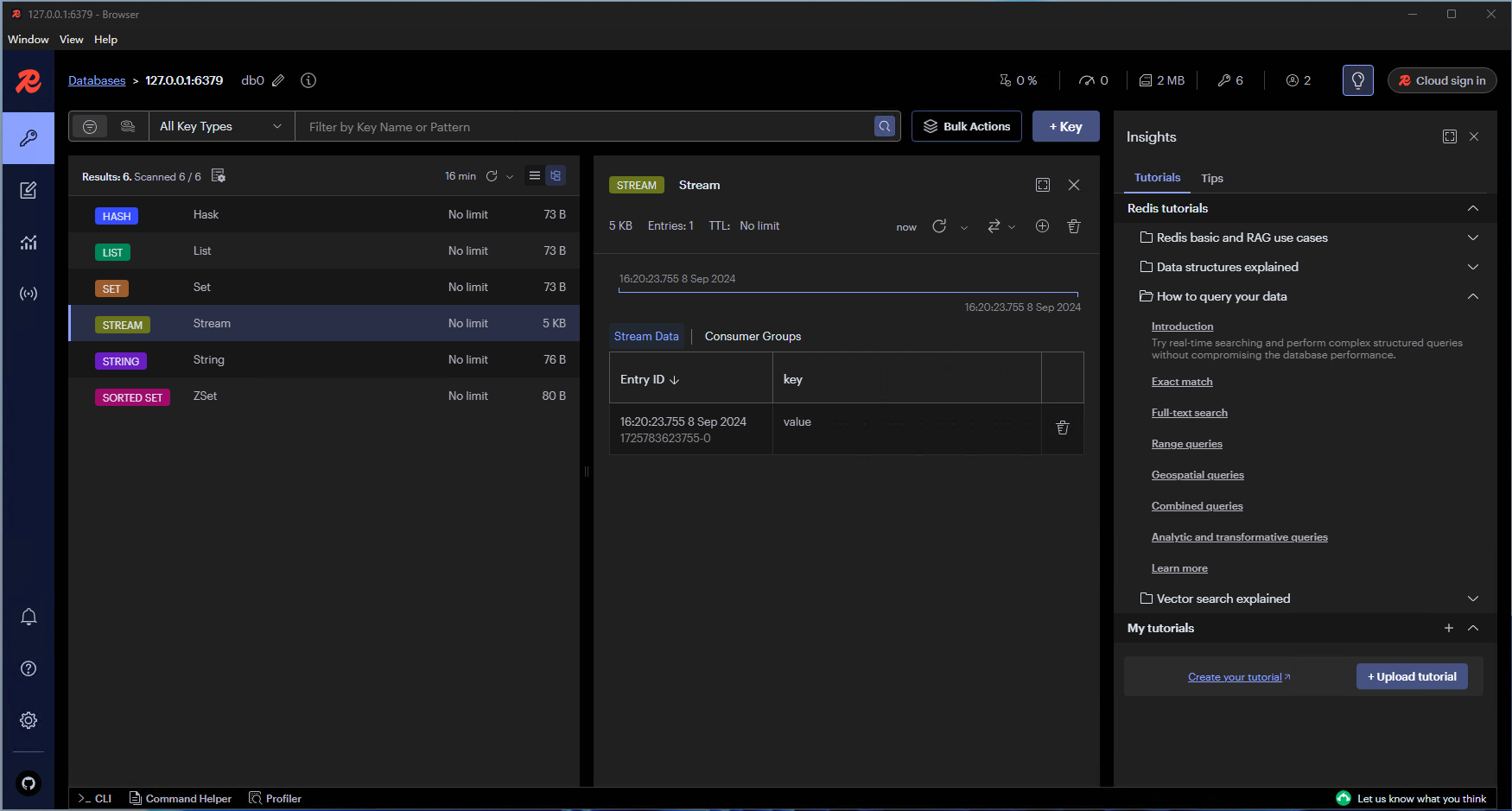 该工具是从Redis Desktop Manager发展来的,随着发展已有超过原工具的趋势。该工具也是跨平台工具,开源免费,支持Windows、Linux和Mac,该工具以更快、更好、更稳定的Redis桌面客户端工具为目标,性能也是很出众,加载海量键值轻轻松松。该工具支持哨兵, 集群, ssh通道, ssl认证, stream, subscribe订阅, 树状视图, 命令行,暗黑模式, 以及多语言; 多种格式化方式, 以及自定义格式化脚本,可以满足各种需求。