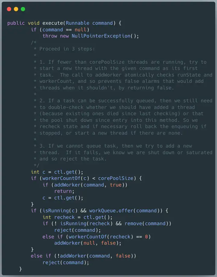 可以看到,第 30 行调用的是 workQueue 的非阻塞的 offer 方法。