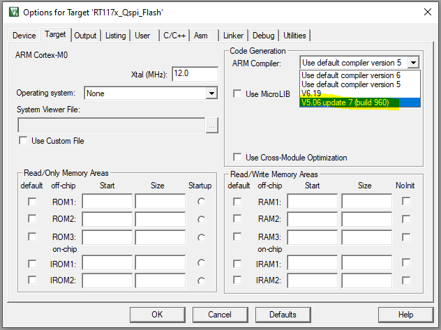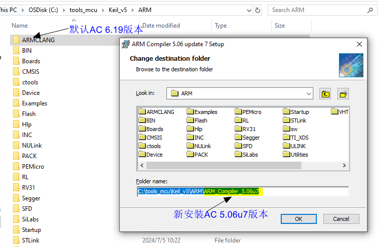 操作完成后,重新打开 MDK,这时候就能在工程选项编译器选择里看到新安装的 Arm Compiler 5.06u7 啦。当然你想安装多个 AC5 或者 AC6 版本也是可以的,方法一样。