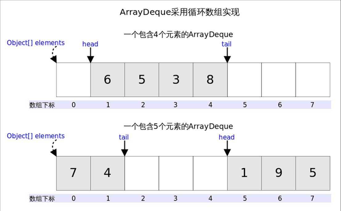 ArrayDeque和LinkedList是Deque的两个通用实现,由于官方更推荐使用AarryDeque用作栈和队列,加之上一篇已经讲解过LinkedList,本文将着重讲解ArrayDeque的具体实现