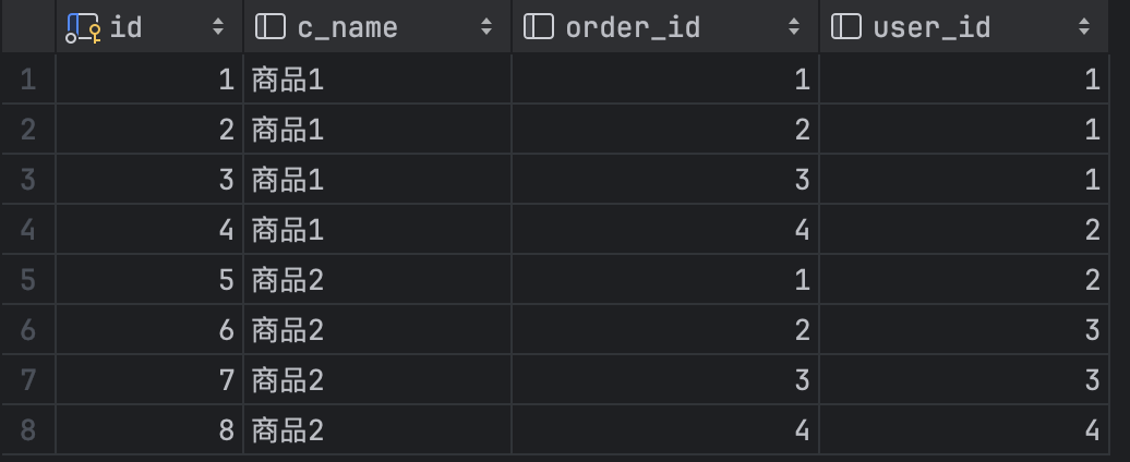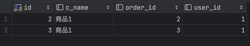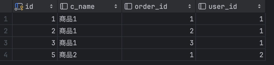 下面我们查询 commodity ,按照 order_id 进行分组
