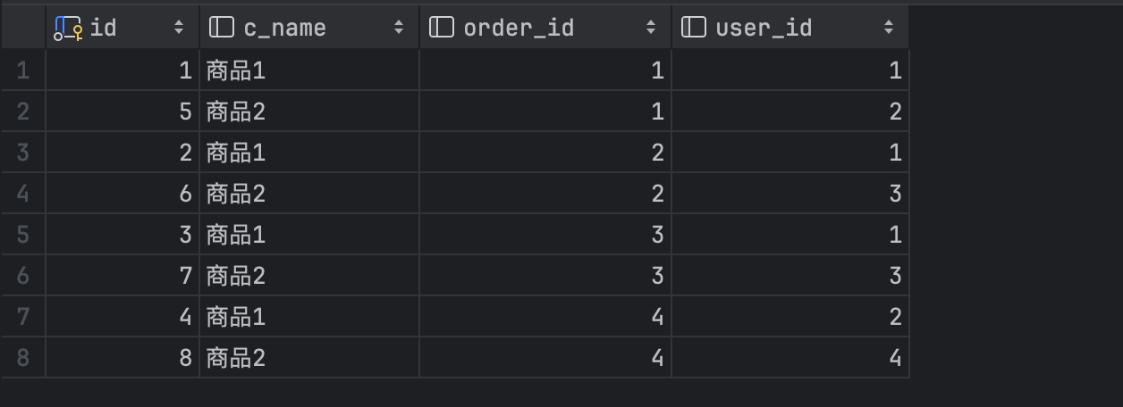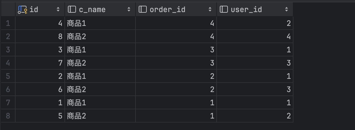 现在我们查询一下 commodity 结果按 order_id 排序