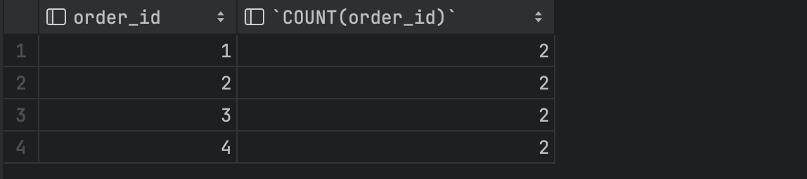 按照 order_id 分组之后我们再看下每一组具体有多少条数据