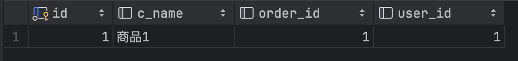 查询 commodity 表中 order_id = 1 并且 user_id = 1
