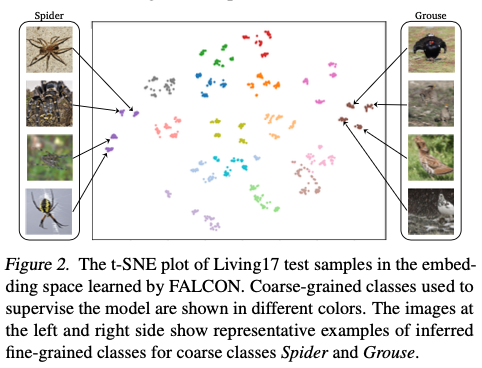 FALCON,一种从粗粒度标记数据中无需细粒度级别的监督就能发现细粒度类别的方法。FALCON同时推断未知的细粒度类别和粗粒度类别之间的潜在关系。此外,FALCON是一种模块化方法,可以有效地从多个具有不同策略的数据集中学习。我们在八个图像分类任务和一个单细胞分类任务上评估了FALCON。FALCON在tieredImageNet数据集上超过最佳基线22%,实现了600多个细粒度类别。来源:晓飞的算法工程笔记 公众号,转载请注明出处