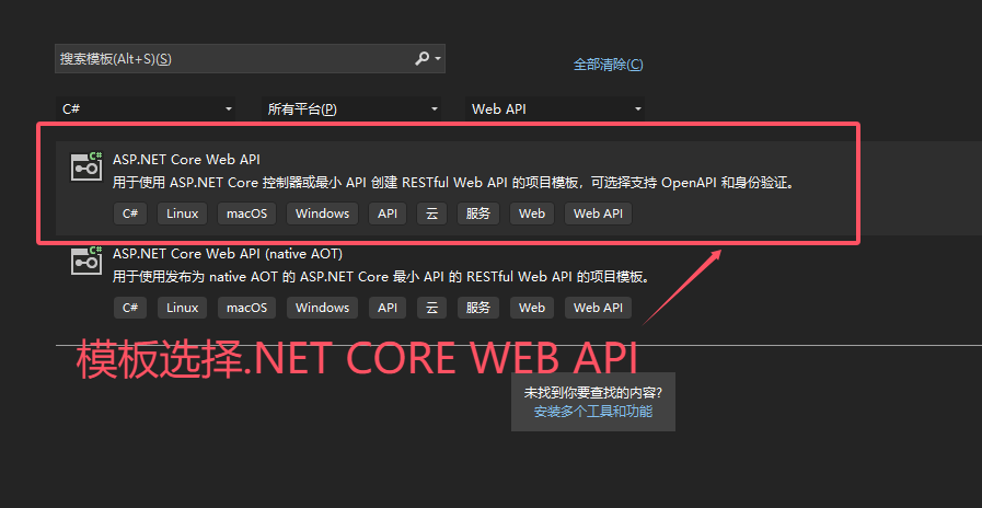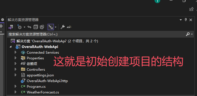 OverallAuth2.0依然和OverallAuth1.0一样,采用前后端分离模式,所以搭建后端,我们选择 .net core web api(如下图)