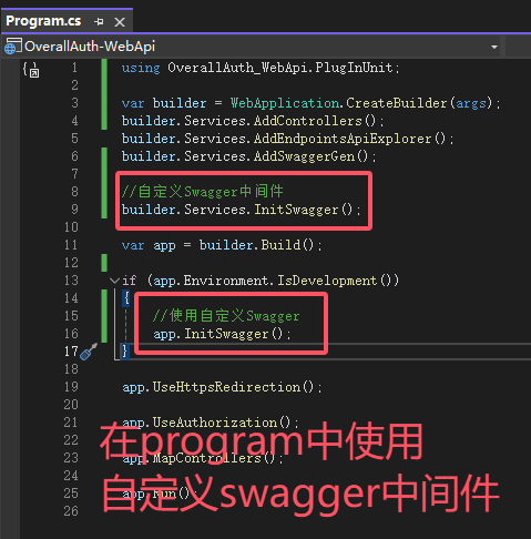 然后再program中使用自定义swagger中间件