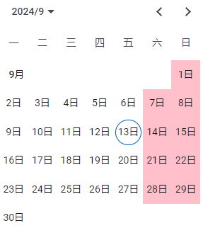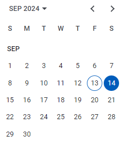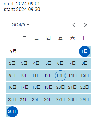13 号有 border 是因为 13 号是 today (本篇写于 2024-09-13),14 号有 background-color 是因为 14 号是 selected date。