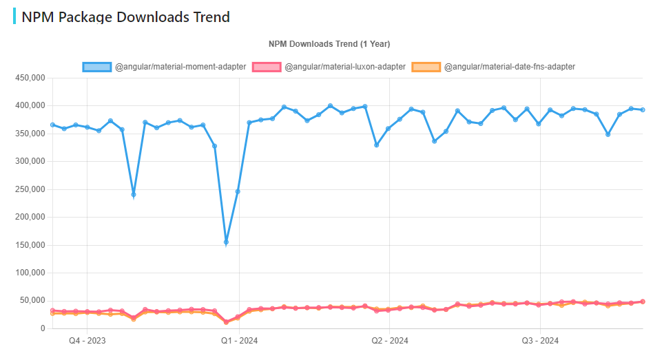 像 Angular Material Datepicker 就需要同时支持所有受欢迎的 Date Library,否则就会出现一堆繁琐的转换操作。(e.g. convert Date to Luxon / Moment / Dayjs / date-fns date object)