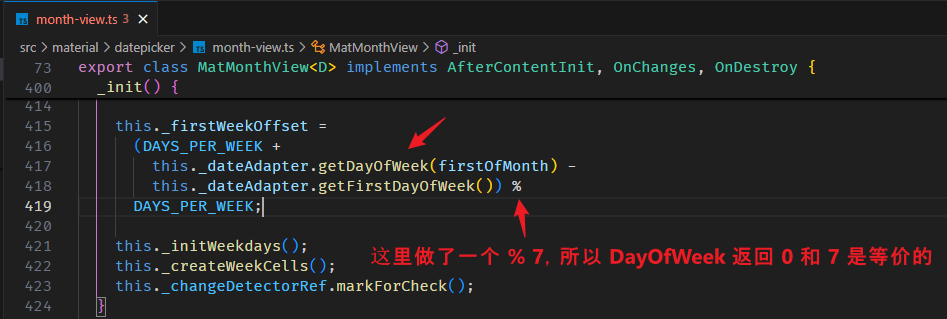 Angular Material 两个都兼容,返回 7 或者返回 0 都可以用来表示星期日。
