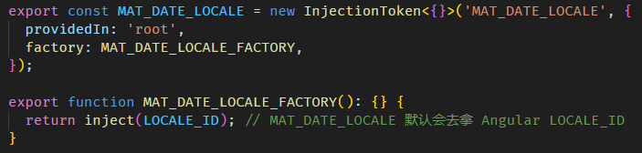 MAT_DATE_LOCALE 默认会拿 Angular 的 LOCALE_ID (这个我没有教过,以后教 i18n 时会补上),Angular LOCALE_ID 的默认值是 "en-US"。