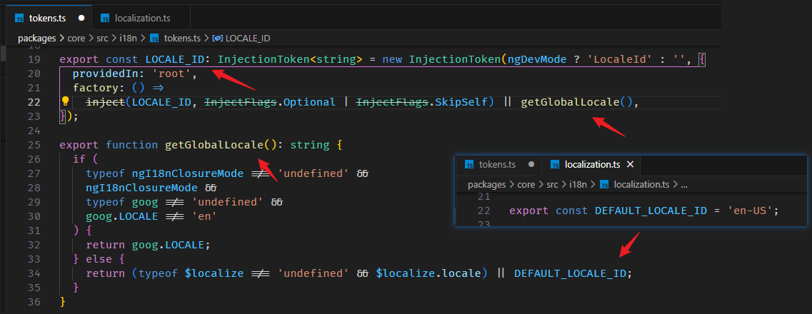 总之,默认是美国英语就对了,想显示中文,我们可以把 LOCALE_ID 改成 "zh-Hans-CN" (zh-Hans 代表简体,CN 代表中国)。