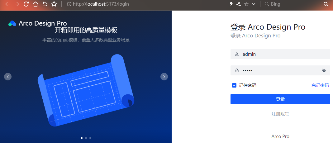 通过地址 http://localhost:5173/ 进行访问,直接登录后即可查看示例页面: