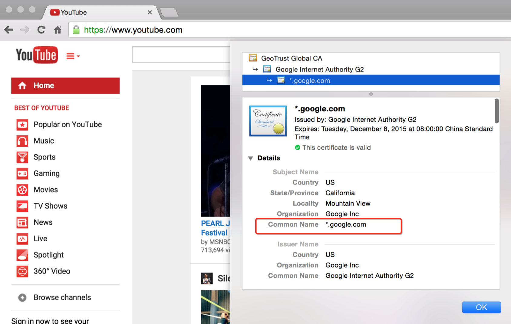 先来看一看 Google 是怎样使用 SAN 证书的,下面是 Youtube 网站的证书信息: