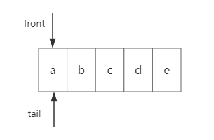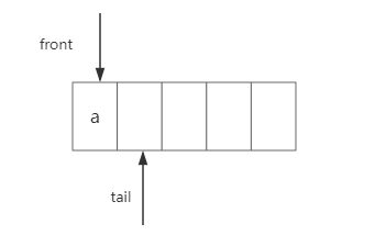 队头下标和队尾下标都是指向数组中的第0个元素,现在我们插入第一个元素“a”,如图: