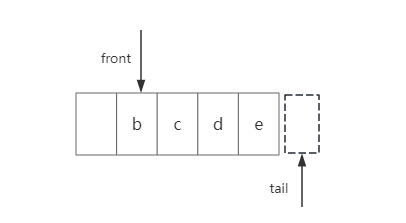 第0个元素“a”在数组中移除了,并且front下标+1,指向第1个元素。