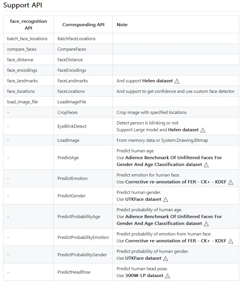 它使用了 OpenCVSharp 和 face_recognition 开源库,并提供了 NuGet 包,方便集成到项目中。