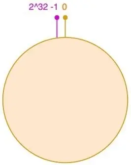 构建哈希环:将整个哈希空间组成一个 0-2^(32-1) 的虚拟圆环,即哈希环,如图所示